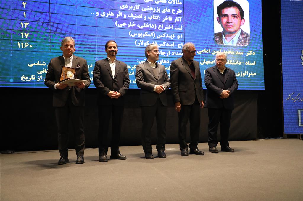 در آیین بیستوششمین جشنواره پژوهشگران، فناوران و نوآوران کشور که با حضور وزیر علوم، تحقیقات و فناوری ، سرپرست معاونت پژوهشی وزارت علوم و رئیس دانشگاه هنر اصفهان در مرکز همایشهای بینالمللی دانشگاه شهید بهشتی برگزار شد، از آقای دکتر سیدمحمدامین امامی، عضو هیات علمی دانشکده حفاظت و مرمت و رئیس دفتر ریاست، روابط عمومی و همکاری های علمی بین المللی دانشگاه هنر اصفهان به عنوان پژوهشگر برگزیده این دوره از جشنواره تجلیل به عمل آمد.